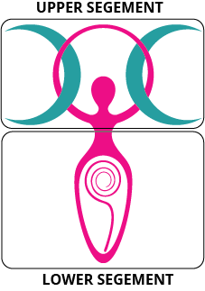 The upper Segment, shows, half moon → fullmoon → Half moon, A complete lunar cycle representing the menstrual cycle of a women.